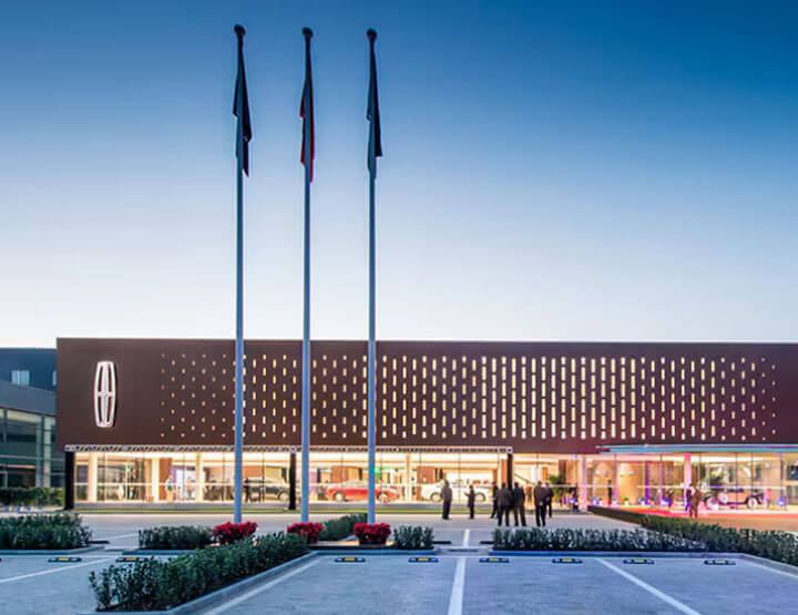 El exterior del museo de 15.000 metros cuadrados, se inspiró en uno de los primeros concesionarios de Lincoln, la estructura de 1920 construido al estilo de la arquitectura neoclásica. La nueva estructura del museo también integra las piedras reales de la entrada principal de la sede original de Lincoln.