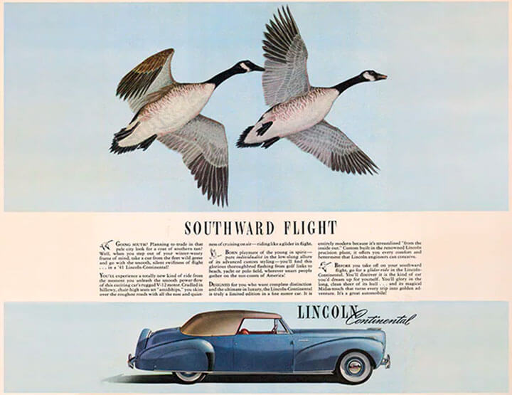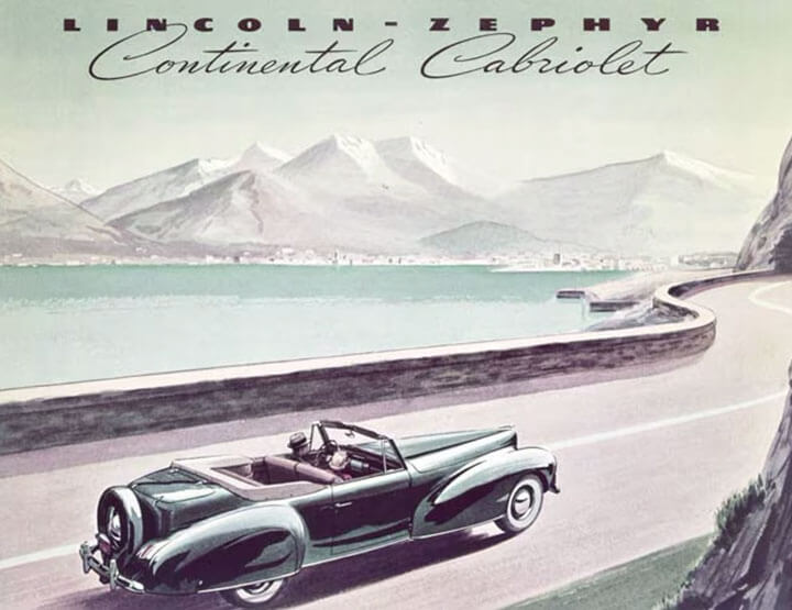 El 13 de Diciembre de 1939, la producción comienza por uno de los diseños más duraderos de la industria automotriz estadounidense. Buscando una toma única de América en los sedanes de gira de "el continente" (también conocido como Europa), Edsel Lincoln pidió al diseñador Bob Gregorie para crear un "coupe convertible especial que fuera largo, bajo y desenfadado" para uso personal en su casa de vacaciones en Florida. En menos de una hora, Gregorie había dibujado el contorno de las dos puertas, cuatro plazas del cuerpo sobre un dibujo de un sedán Zephyr.